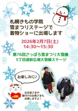 札幌きもの学院、雪まつりの雪像ステージで着物ショーをさせていただきます☃️お楽しみに♪ …