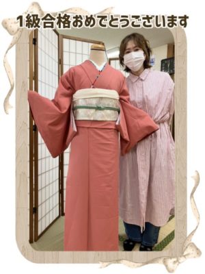 1級合格おめでとうございます🎉 自分できものを着てお出かけしたいという事で始めたお稽古。 お忙しい中着実に一歩一歩、時間をかけて他装まで出来るようになりました。 学院長から着付けのセンスはあるし見る目も持っていると褒めら…